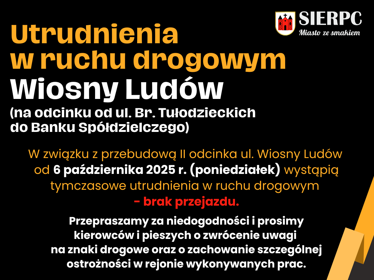 W związku z przebudową II odcinka ul. Wiosny Ludów od 6 października 2025 r. (poniedziałek) wystąpią tymczasowe utrudnienia w ruchu drogowym – brak przejazdu.